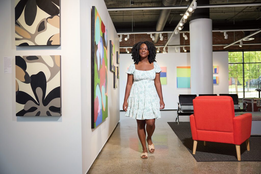 The mural’s artist, Gabe Gault, chose sunflowers because they represent hope, faith and good fortune and historically were grown by Native Americans in the area. He wanted to represent real Native American women and children because their ancestors were an integral part of their tribes’ agricultural practices. “It’s history again,” Reams says. “It’s not just seeing something pretty. There’s a story to tell, and that story is heard by many people.”