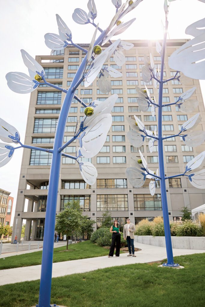 Soon, you’ll be able to take in the mural’s beauty after dark; the Glass City mural will use solar lighting through a partnership between First Solar, Perrysburg Energy and the City of Toledo to become the largest lighted mural in the world. Blue Lupine is another of the city’s eye-catching pieces. The 32-foot steel structure takes inspiration from its namesake blue wildflower, native to the Oak Openings region, and stands outside the Glass City Center.