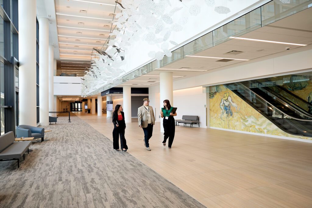 When Lucas County renovated the Glass City Center, the city’s downtown convention center, the county commissioners immediately wanted to include public art. They asked the Toledo Arts Commission to be involved in creating an inviting, art-filled space that has since become a flagship for downtown. The Glass City Center now features a $1.5 million public art collection. Stroll through to enjoy the artworks for yourself, with pieces ranging from the “Ladder of Light” colorful lights in the Monroe Street stairwell to the mixed-media mural “Glass City Jazz – A Global Legacy” celebrating Toledo’s jazz icons.