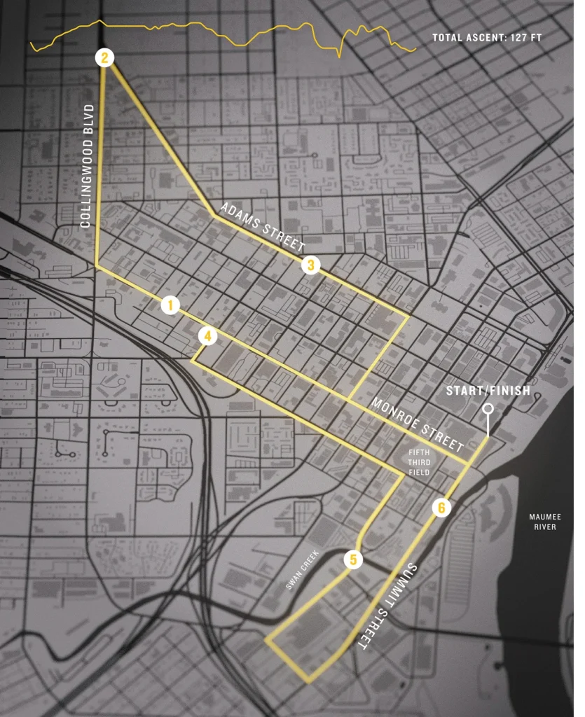 Head to the Glass City Center for the Garmin race expo in the lead-up to race day. All participants are required to pick up their packets during the two-day expo (September 19 and 20). Race day packet pick-up is not available.
