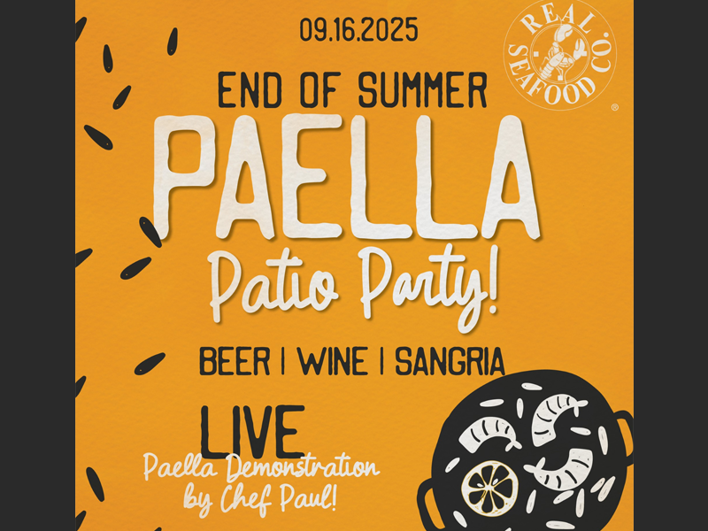 Reservation link: https://resy.com/cities/toledo-oh/venues/the-real-seafood-co-toledo/events/end-of-summer-paella-patio-party-2025-09-16?seats=2&date=2025-08-07