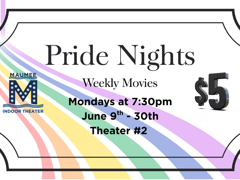 Pride Night Series | Monday Evenings at 7:30pm June 9 – June 30 | Theater #2 | $5 Admission Celebrate stories that matter during the Maumee Indoor Theater’s Pride Night film series; a weekly Monday night event honoring LGBTQIA+ voices, journeys, and joy on screen. From heartfelt dramas to empowering comedies, each film is a […]