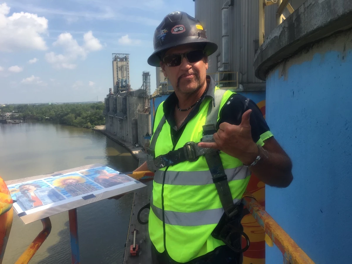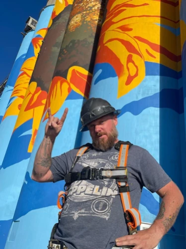 Award-winning international muralist Eric Henn brought over 30 years of experience to the team. Based in Franklin, Ohio, Henn is known for his large-scale, hyperrealistic works and his specialized expertise in painting on conical surfaces such as water towers—and now, Toledo’s iconic grain silos.